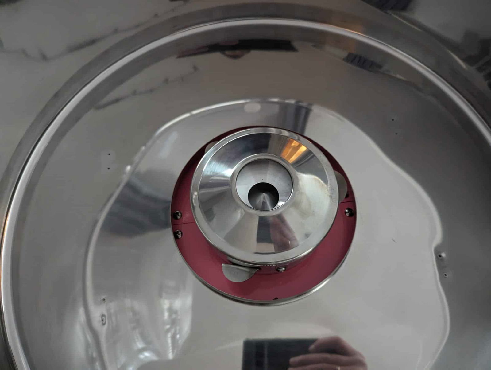 Zuckererhitzung: Der Kristallzucker wird in der Maschine erhitzt, bis er schmilzt und sich in eine sirupartige Konsistenz verwandelt. Dieser Prozess erfolgt in einem speziellen Behälter, der die Temperatur des geschmolzenen Zuckers genau kontrolliert, um die optimale Konsistenz zu gewährleisten.